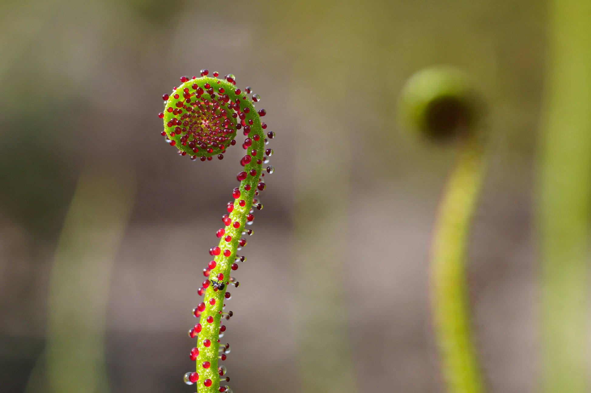 OTHER: It’s CARNIVOROUS! There are an amazing 130 species of Drosera. One thing that all carnivorous sundew plants do have is the gel like substance at the tips of the tentacles that cover the leaves. This gel is a sticky substance that the insects that fly too near the plant get stuck on. The plant can then eat the bug. The many species of the sundew plant can be found all around the world, on every single continent. This is unusual for a plant because most carnivorous plants are found only in one or two regions of the world because of the different climates that they must live in. The plant gets it name sundew because of the gel like substance on the tentacles. The gel makes the plants look as if they have morning dew on them all day long, especially when it glistens in the sun. Some of the different varieties of carnivorous sundew plants are the temperate sundews, which are a red flower that looks like a tube, with tentacles all over it, the pygmy sundews, which are tiny red balls that grow close to the ground with tentacles all around it, and king sundews, which look like a tall, thin cactus with red tentacles up the four sides of it. Our thanks to http://www.carnivorous--plants.com for the great information.