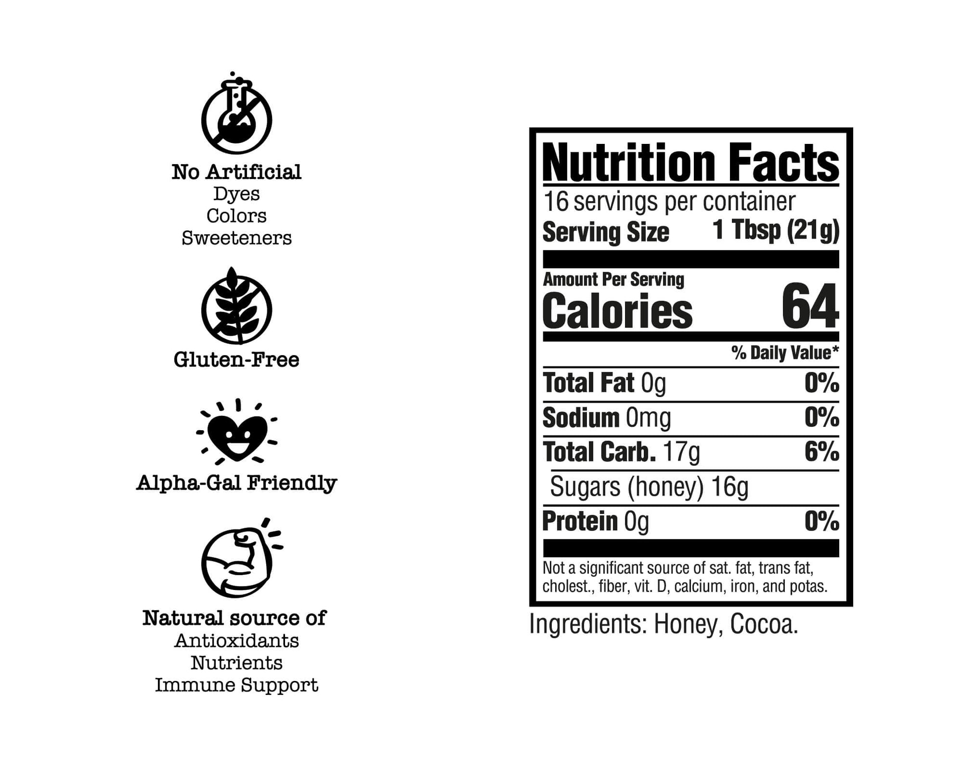 Our dairy free Chocolate Honey Drizzler is ready for action in your coffee, on waffles, as a dip, or over ice cream or cheesecake.