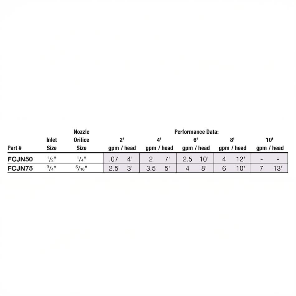 Each nozzle creates a smooth, continuous stream of water. 3/4" FPT inlet