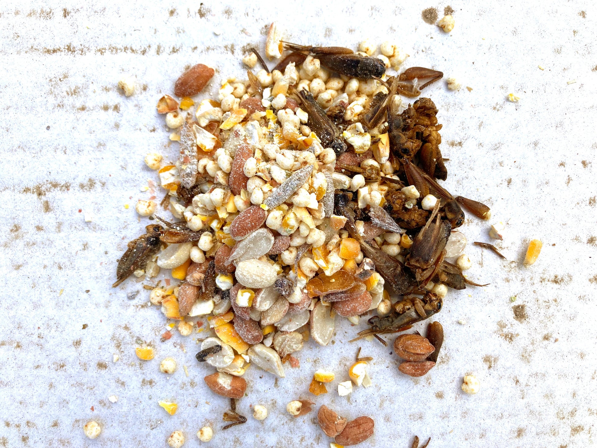 INGREDIENTS: Corn, Peanuts, Hemp, Marjoram, Puffed Millet, Black Soldier Fly Larvae, Crickets