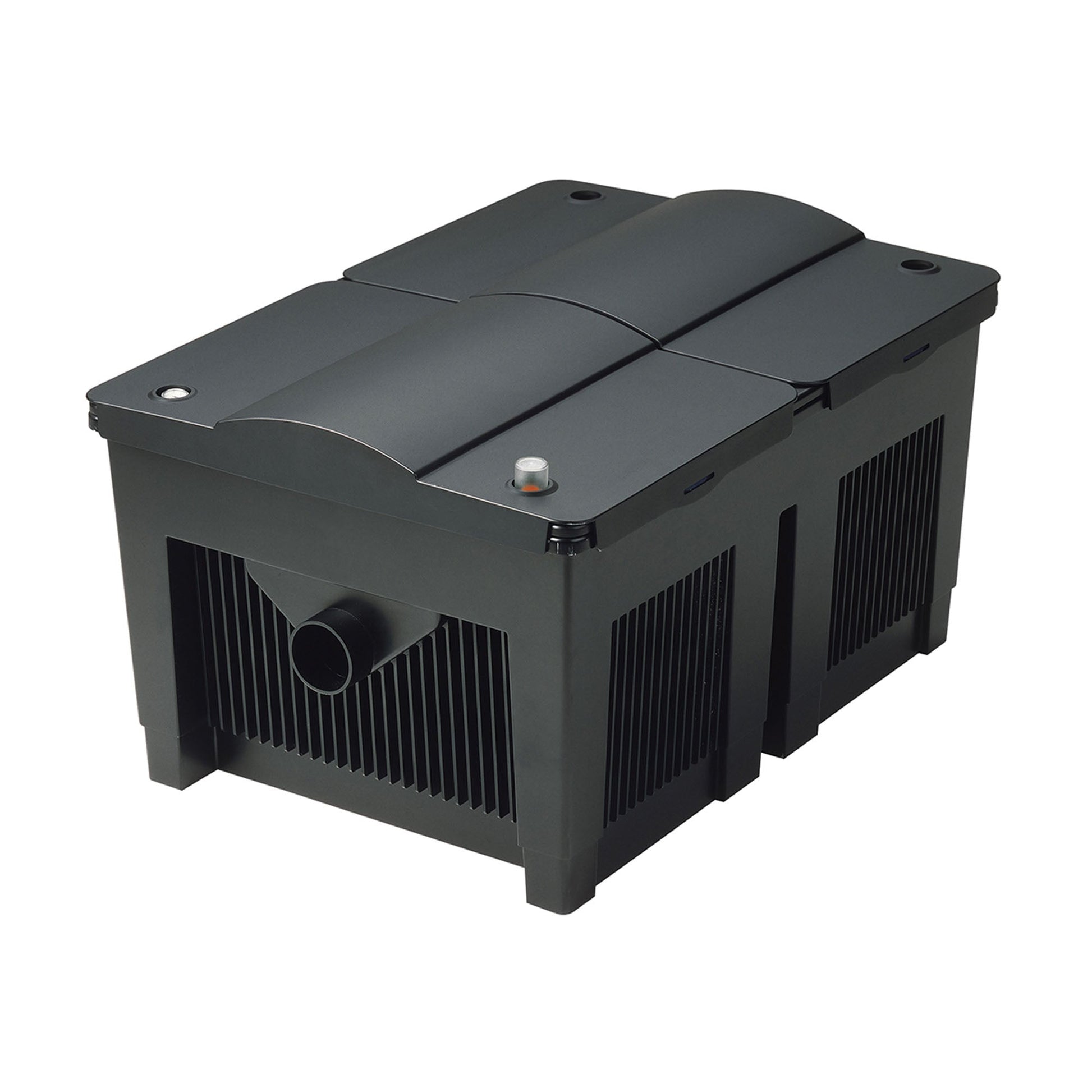 OASE BioTec Screenmatic² flow through filters with biological and mechanical filtration, clean and clear pond water which flows back down to the pond by gravity. The OASE BioTec Screenmatic² automatically separates debris using the self-cleaning screen, then depositing coarse debris into the removable tray. The adjustable intelligent cleaning sensor is mounted above the screen and detects buildup of debris and then automatically empties the screen into the debris tray. It has a high efficiency filter system that features 3 different densities of foam harboring a variety of beneficial bacteria that removes harmful ammonia and nitrites. The double-sealed screen motor and reinforced screen material ensures an extended service life. The foam distribution and optimized water level in the container, ensures a longer filter service life, improved filtration and reduced maintenance. The Filter Foams clean directly inside the filter in the pond water to preserve beneficial bacteria colonies and reduce water waste. Slide the valve on the sludge drain to remove sludge and dirty water with minimal mess. You can add an optional Bitron C UVC clarifier to any Screenmatic² filter system for enhanced clarity and cleaner water. It qualifies for the OASE Clear Water Guarantee when paired with the proper pump and UVC Clarifier.