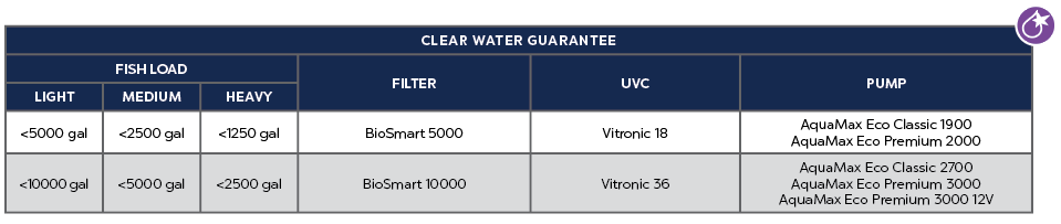 Qualifies for the OASE Clear Water Guarantee when paired with the proper pump and UVC Clarifier