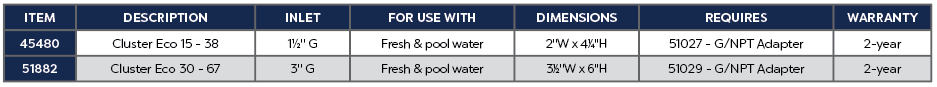 Cluster Eco nozzles with 21 and 64 single jets respectively create single columns up to 33' high