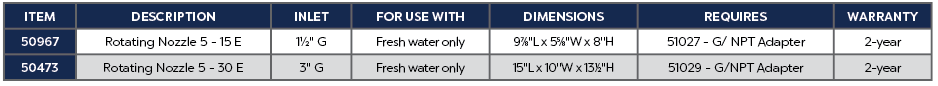 The Rotating Nozzle 5-15 E is intended for fresh water only and is water level independent.