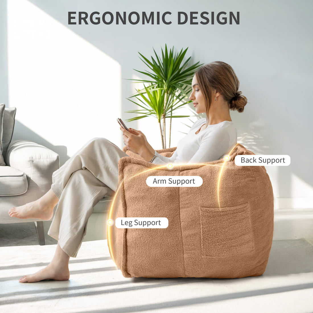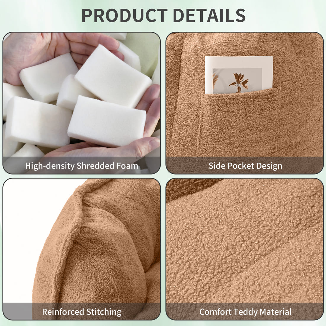 Soft & Comfortable: Wrapped in ultra-soft teddy plush, it offers a soft, textured feel that’s both cozy and stylish, and filled with high-resilience foam beads, this bean bag molds gently to your body for all-day relaxation.