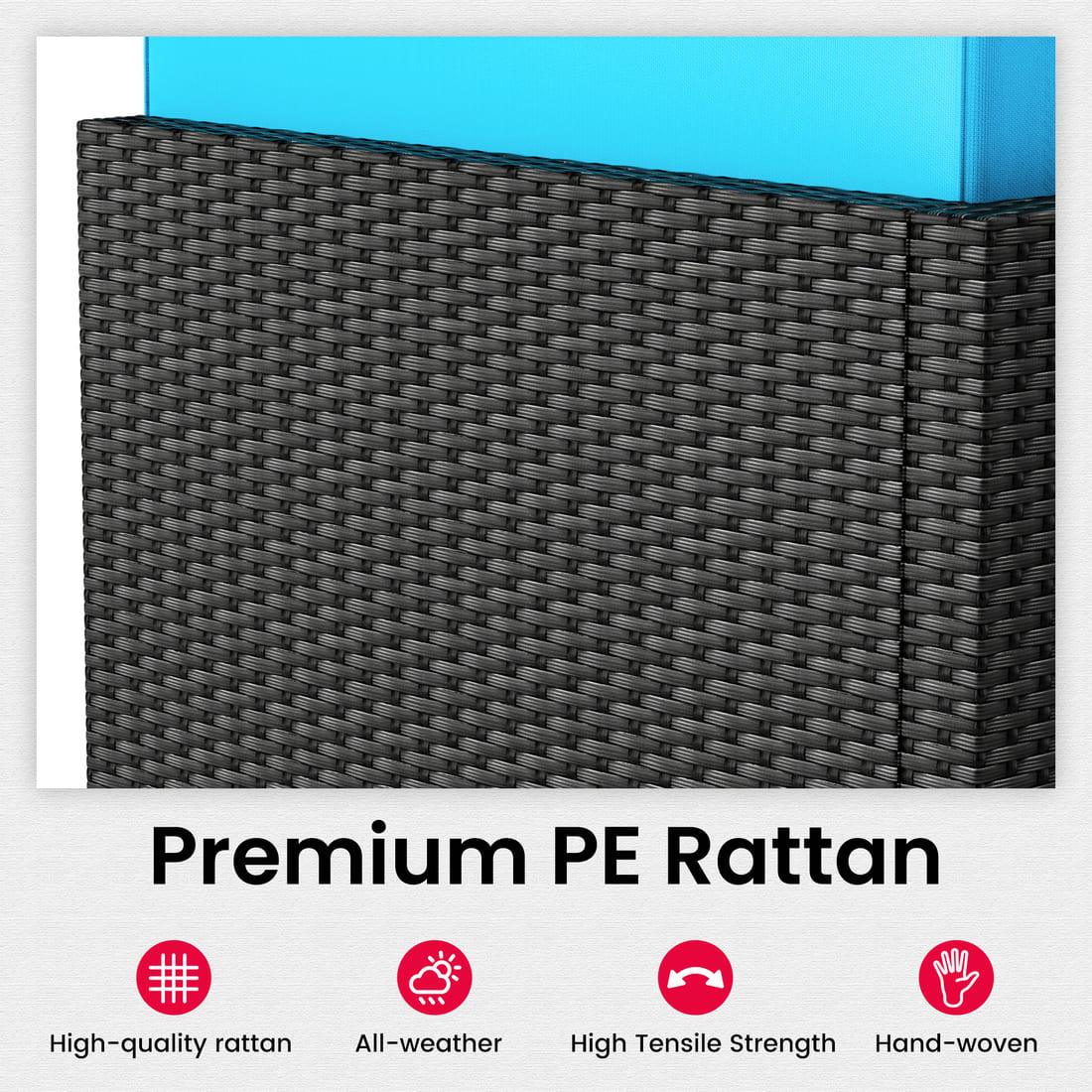 Durable PE rattan over a reinforced steel frame ensures long-term outdoor use. Water-resistant cushions provide soft, supportive seating while resisting fading and moisture.