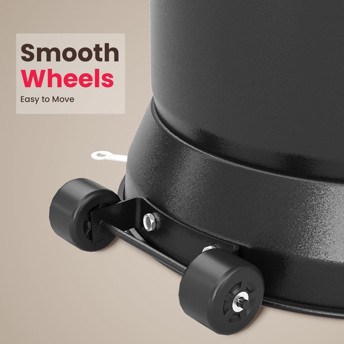 Pamapic’s propane patio heater delivers 48,000 BTU warmth for cold summer nights, autumn evenings, or winter gatherings. Its unique stainless steel tabletop provides space for snacks/drinks while retaining heat. The anti-tilt system shuts off gas if angled beyond 45°, and three base fixers with stakes enhance stability. Two wheels enable easy mobility, and the included storage cover protects against weather damage. Built with stainless steel and a heat-reflective metal shield for durability.