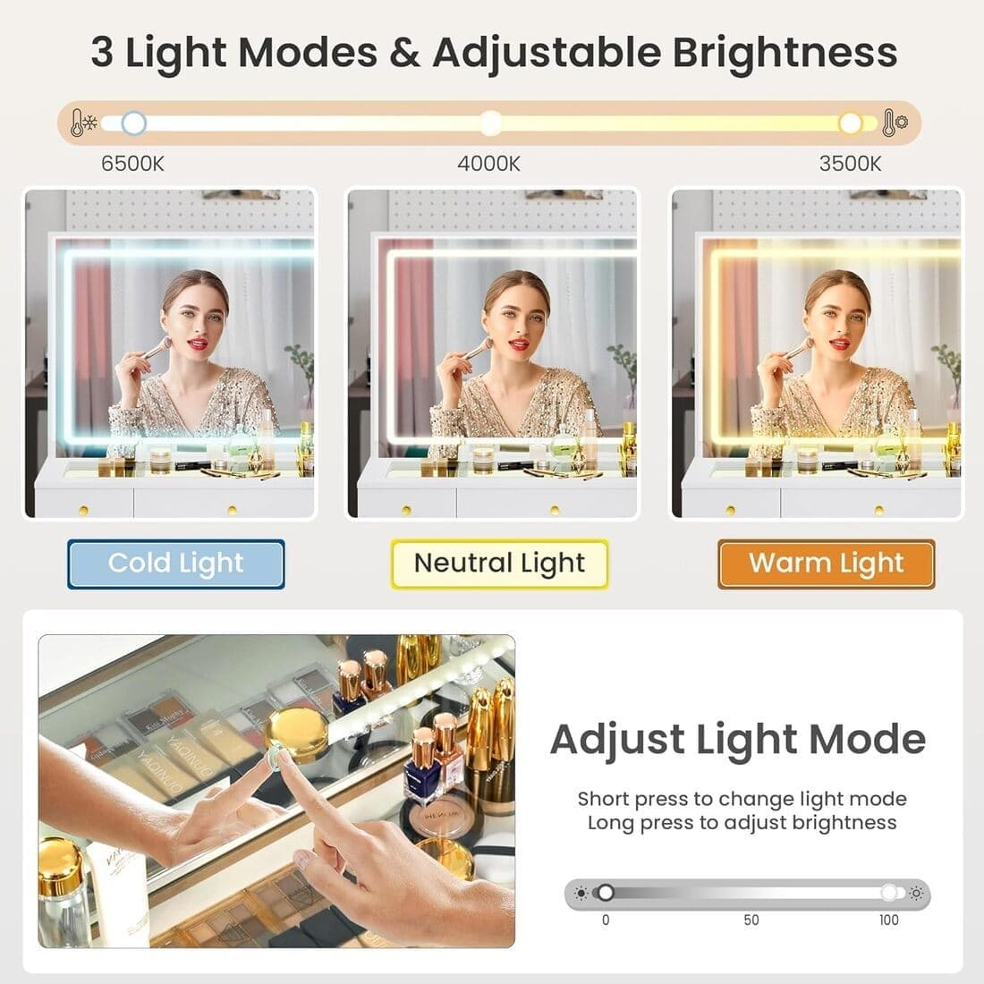 LED Mirror Lighting Modes: Cool (3500K), Warm (6500K), and Natural (4500K)