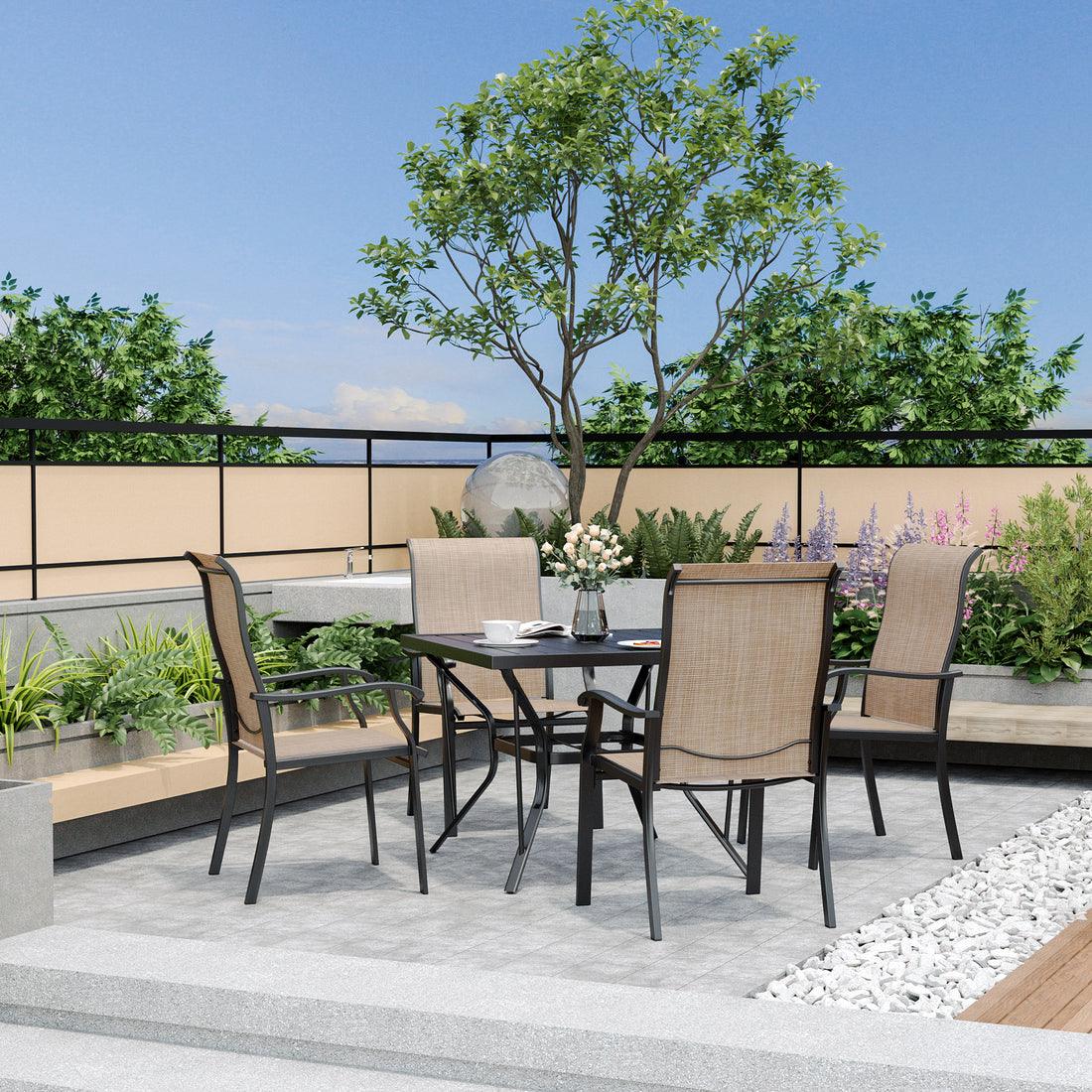 Upgrade your outdoor dining with Pamapic’s 5-piece set. The Textilene chairs are breathable and quick-drying, while the rust-proof iron table includes a 2” umbrella hole for shade. Modern lines suit contemporary decks or classic gardens. Easy to clean and stackable for storage, this set is built for BBQs, family dinners, or casual coffee mornings.