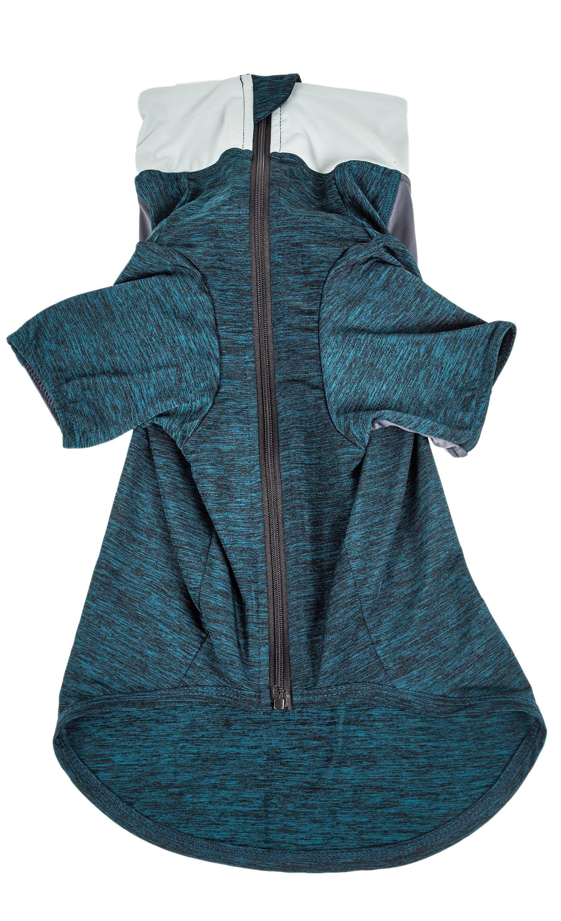 The Pet Life ® Active 'Chewitt Wagassy' 4-Way-Stretch Yoga Fitness Long-Sleeve Dog T-Shirt features specially engineered Stretchy fabric that are Lightweight and Permeable resulting in a well Ventilated system that is specially developed to maximize Mobility and Breath-ability. Features 4-Way Stretch Technology that moves better in every direction with a customized relaxed fit without the squeeze and won't bunch up. The side of the body and arms feature a lighter blend of fabric for strategic ventilation. Features Quick-Drying properties that dries extremely fast while offering Anti-Odor technology that prevents odor causing microbes. The Chewitt-Wagassy Long Sleeve T-shirt also offers UV Protectaion against the suns harmful rays and fitted perfectly to help assist in containment or collection of shedded hairs. This Dog T-shirt is perfect for performance fitness and outdoor dog yoga Activities. Features Dual Reinforced stitching at every seam for durability with a convenient zippered design with protective zipper flaps preventing the pet's hairs from getting caught within the zipper tracks. Additionally this T features Reflective Taping for added night visibility and a Leash Slit along the back. Machine Washable. This style is part of our Pet Life ® Activewear Collection. Available in Multiple Sizes and Colors.