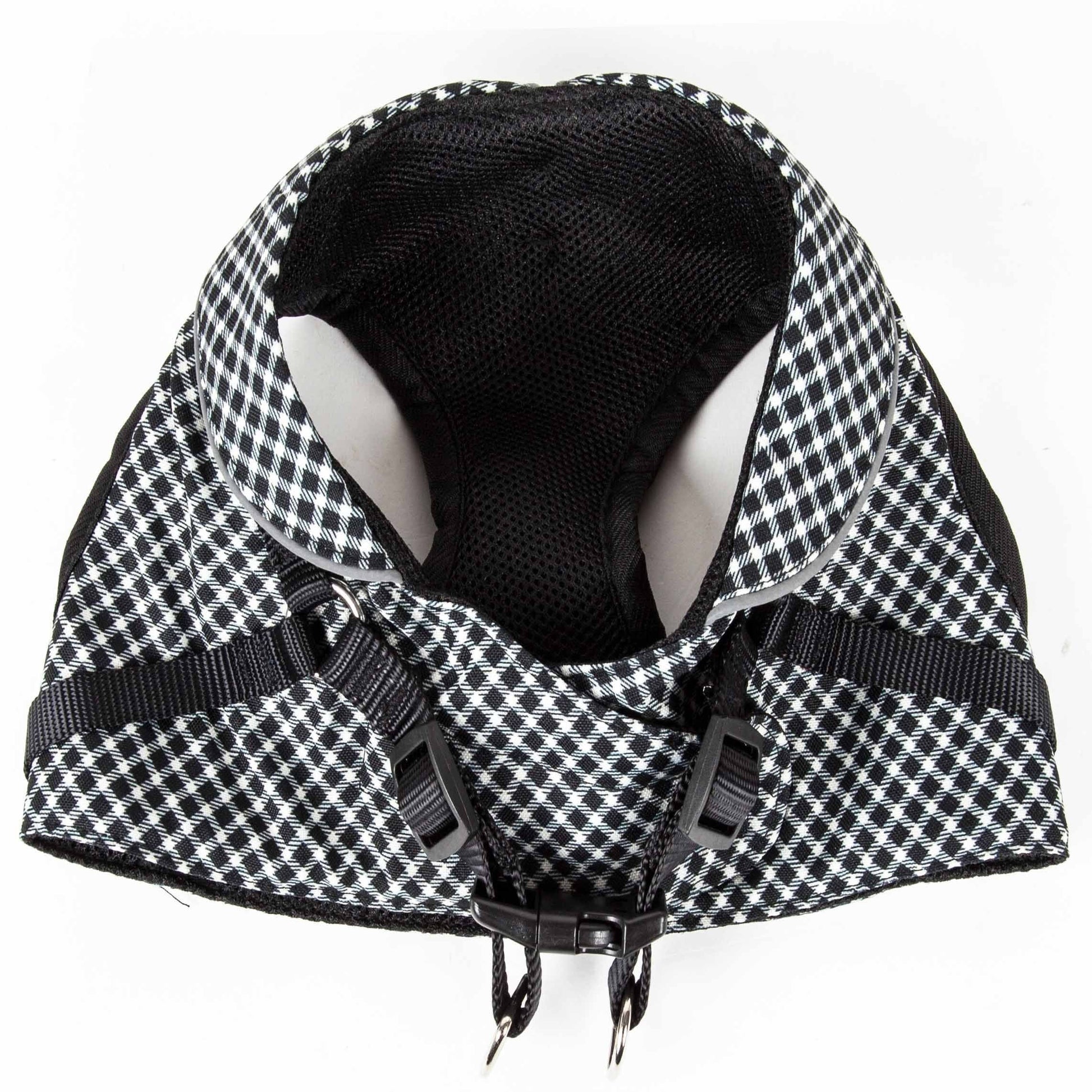 The Pet Life ® 'Checkerwag' Checkered Mesh Reversed and Adjustable Fashion Dog Harness features a Micro-weaved exterior shell that is reversed with breathable and comfortable accented Micro-mesh for premium comfort that gently hugs the body. The Harness features beautifully checkered body and collar with accented paw buttoned trims. The back of these dog harnesses feature adjustable Mesh and Nylon straps with dual stainless steel hooks that connects to all dog leashes. The Flam-bowyant harness was specially engineered to limit stress around the stomach by placing light stress around the sternum for proper comfort. Features reinforced stitching for durability. Available in Multiple Sizes.