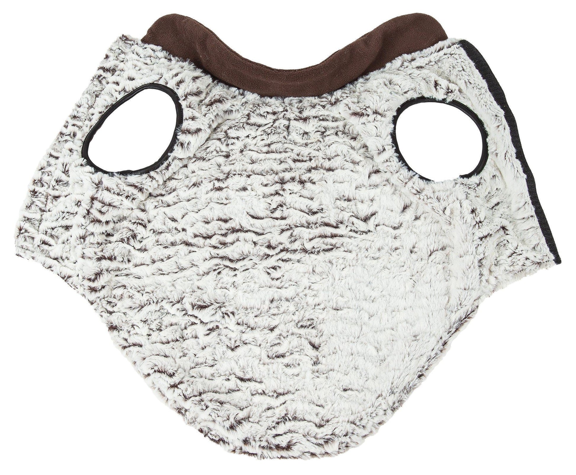 The Pet Life ® Luxe 'Purrlage' Pelage Designer Fashion Fur Dog Coat features a Lavishly Ruffled or Rippled Faux-Fur White and Coco-Brown Pattern along the back side and reversed with Polar Fleece that gently hugs the body. This fashion dog jacket is further Inner-Lined with High-Grade Poly-fill for added comfort and warmth with sponged sided lining across the sleeve areas for superior craftsmanship and durability with an accented fleece collar. Features Tough-Grade Hook-and-Loop Belly Enclosures for convenient on and off access and a leash slit below the Neck line. This jacket is part of our Pet Life ® Luxury collection. Available in Multiple Sizes.