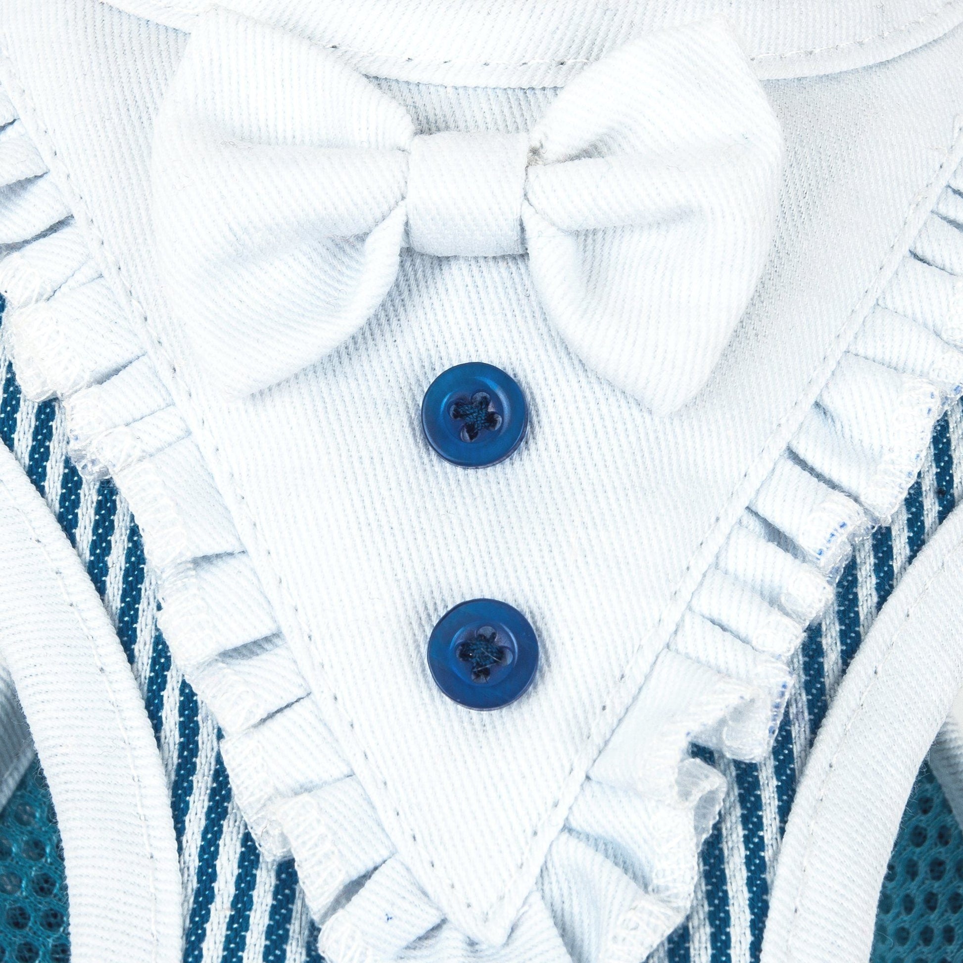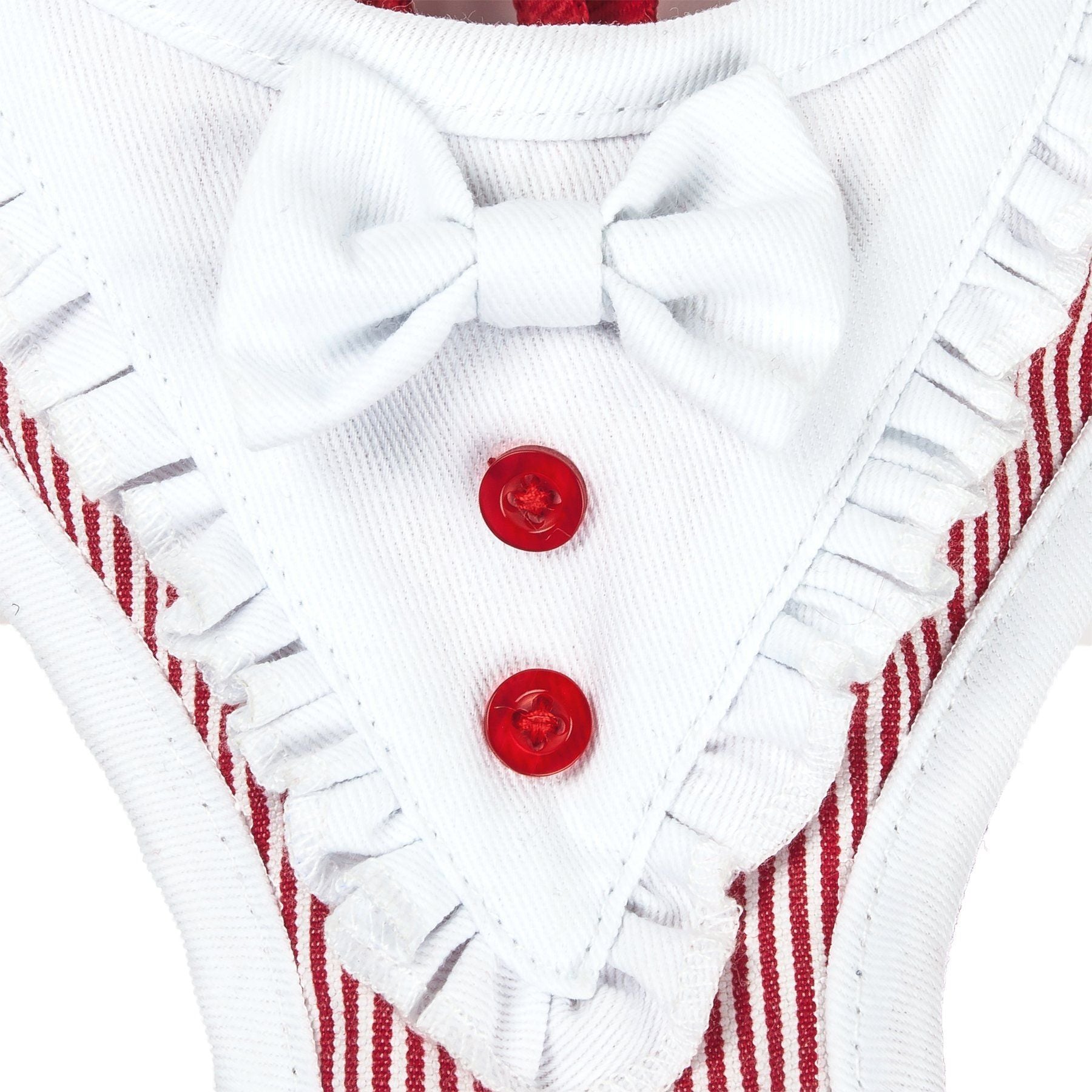 The Pet Life ® Luxe 'Spawling' 2-In-1 Adjustable Fashion Dog Harness and Leash features a blended exterior that is reversed with breathable accented Micro-mesh on the Harness for premium comfort. The Harness features well-coordinated stunning vertical patterned stripes that resemble a Kitchen-like smock dress with a well coordinated dog bowtie that sits above a ruffled smock-like material with wonderfully accented buttoned trims below the dog collar. The back of these dog harnesses are completely adjustable with dual stainless steel hooks that connect to the swivel hook on the leash for multi-directional pull. Designed and engineered to limit stress around the stomach by placing light stress around the sternum for proper comfort. Features reinforced stitching for durability. Available in Multiple Sizes and Colors.