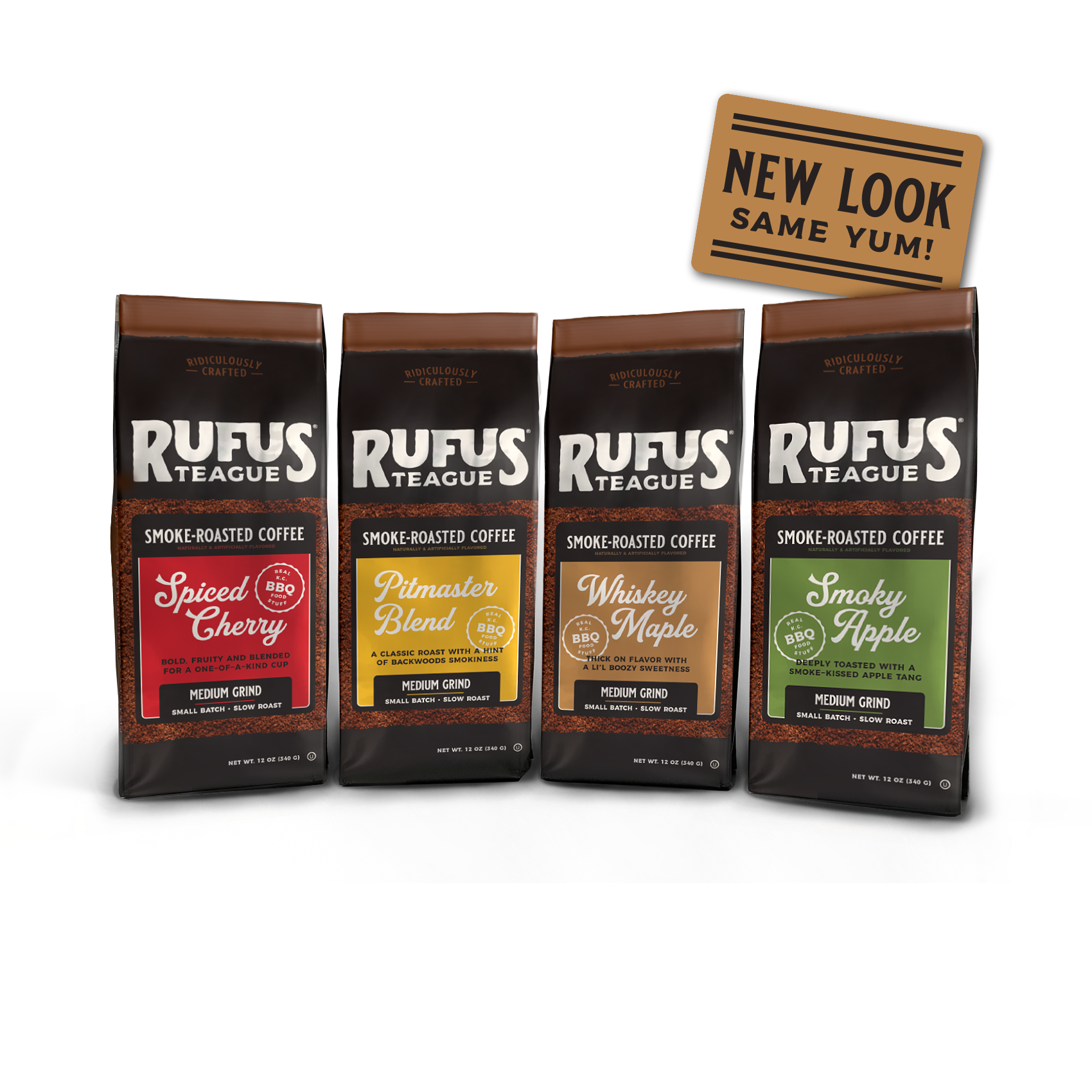 You'll get one bag each of PITMASTER BLEND, WHISKEY MAPLE, SPICED CHERRY and SMOKY APPLE. That's a lot of flavor, so get ready to brew up a pot, kick back and know what you're drinking is coffee, just gooder.