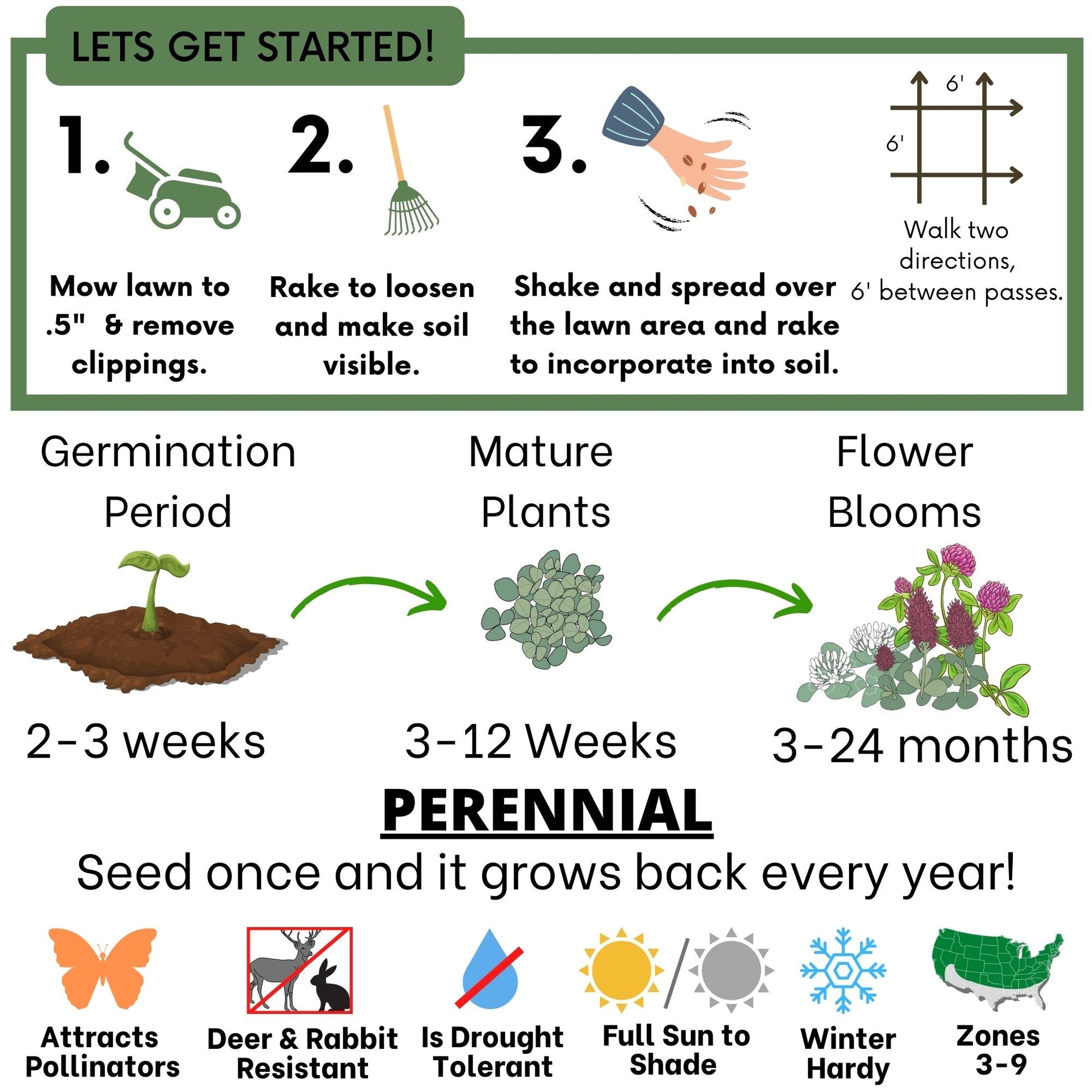 - Better For Your Family & The Environment -- Our specialty flowering lawn seed is kid and pet friendly. It attracts beneficial pollinators while reducing your property's carbon footprint!